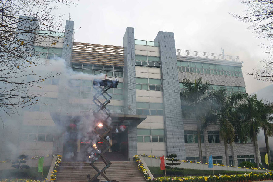 2月26日一大早,顺威股份集团办公大楼门口偌大的广场花团锦簇,长长的鞭炮早已架好。这时,不少的顺威员工已井然有序地围在鞭炮周围。大家相互送出新年的美好祝福,热心等待着祥瑞时刻的到来。
